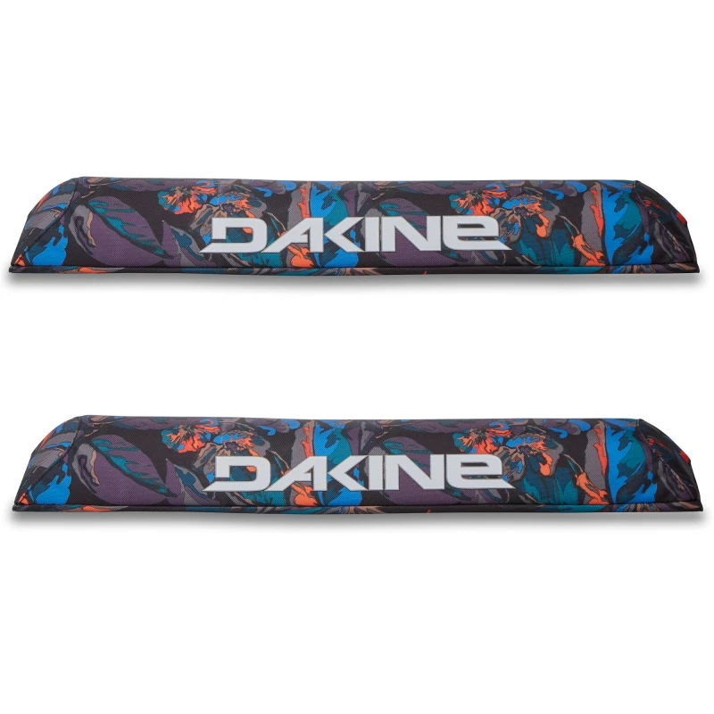 18 inch wide Dakine aero roof bar pads, Tropic Dream print, high density padding. 3.5 inches deep which fits almost all aero style bars. 600d highly durable polyester full length velcro underneath.