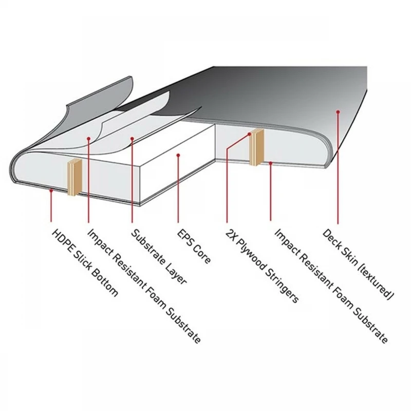 * Deck: Embossed EVA Grippy textured deck surface. Highly water resistant and extremely durable. Excellent grip and impact resistant.