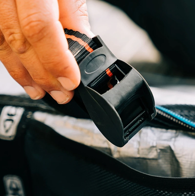25mm webbing with secure quick action rubber coated alligator clips. Ideal for surfboards, skis snowboards, includes storage bag.