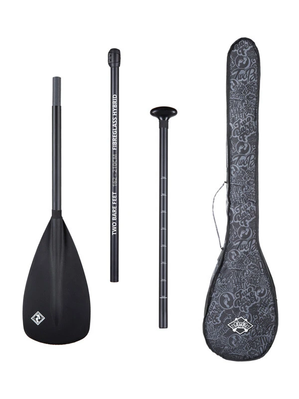 Two Bare Feet 3 Piece Fibreglass Hybrid SUP Paddle & Bag Package (Black)