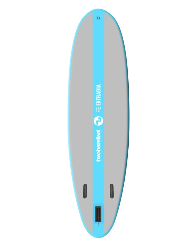 Rather than adding a heavy second layer of PVC, we keep the weight down with PVC laminate strips on the top and bottom of the deck that add extra tensile strength to the lightweight material. This increase in tensile strength on both sides of the board significantly boosts rigidity. The combination of the Entradia’s low weight and the added strength of the strips means your paddle strokes are more effective and you have a stable, yet responsive and agile board.
